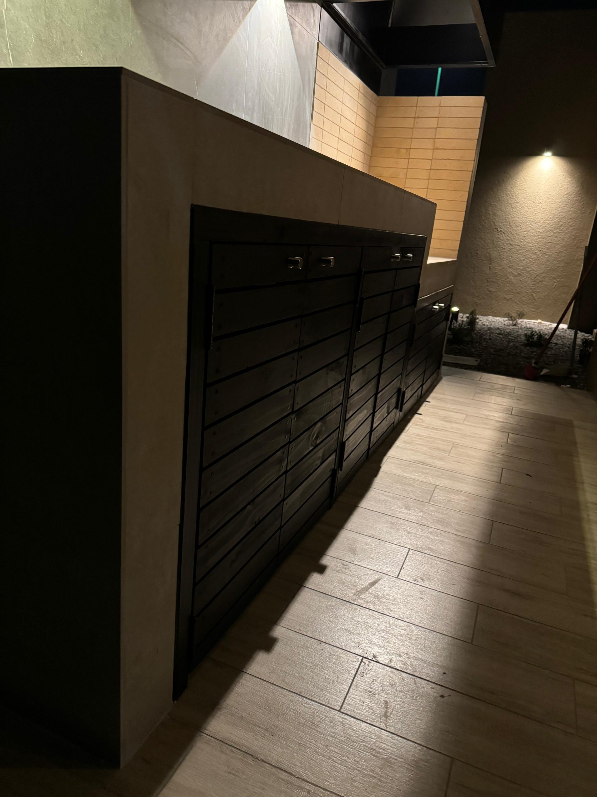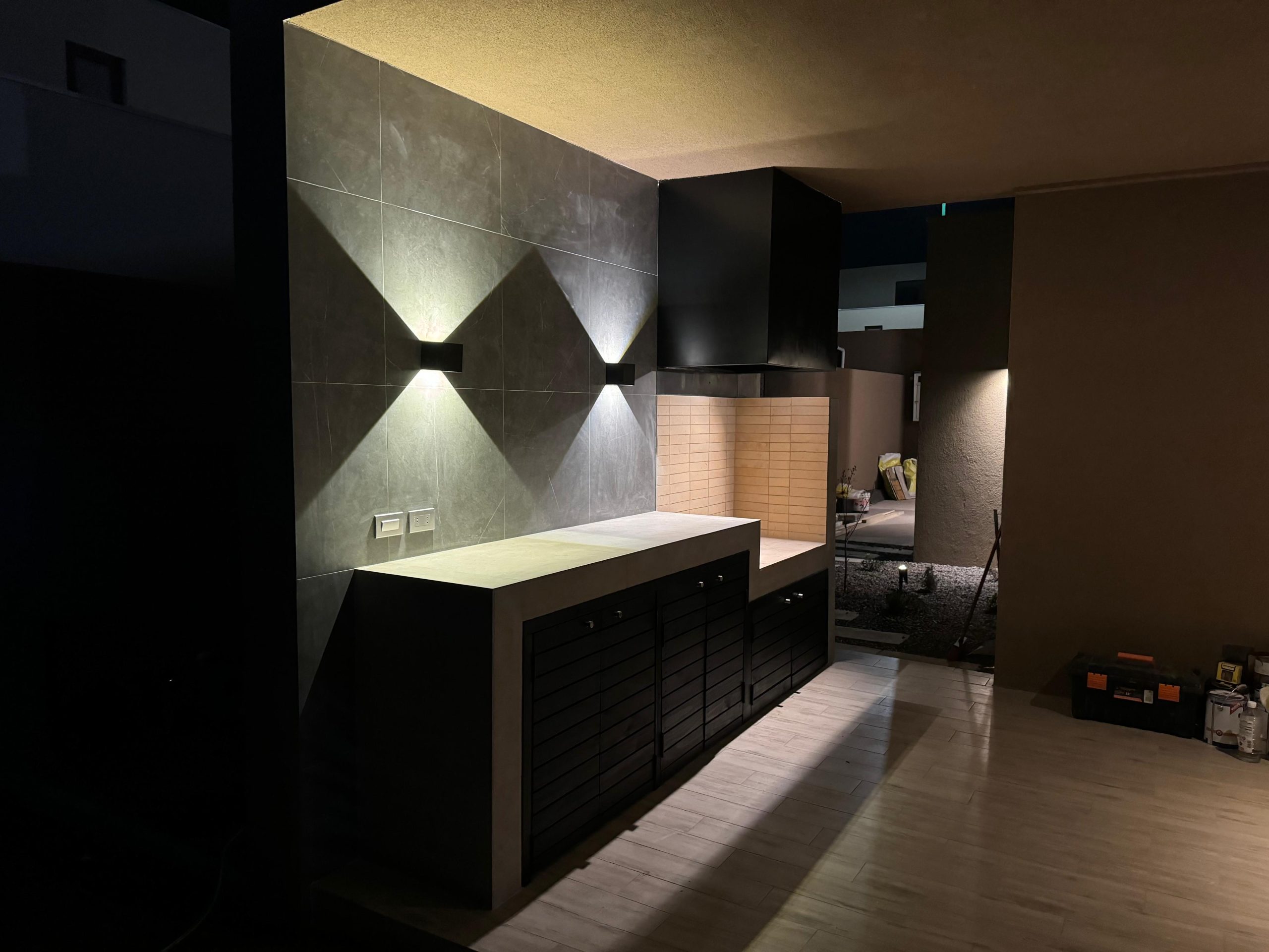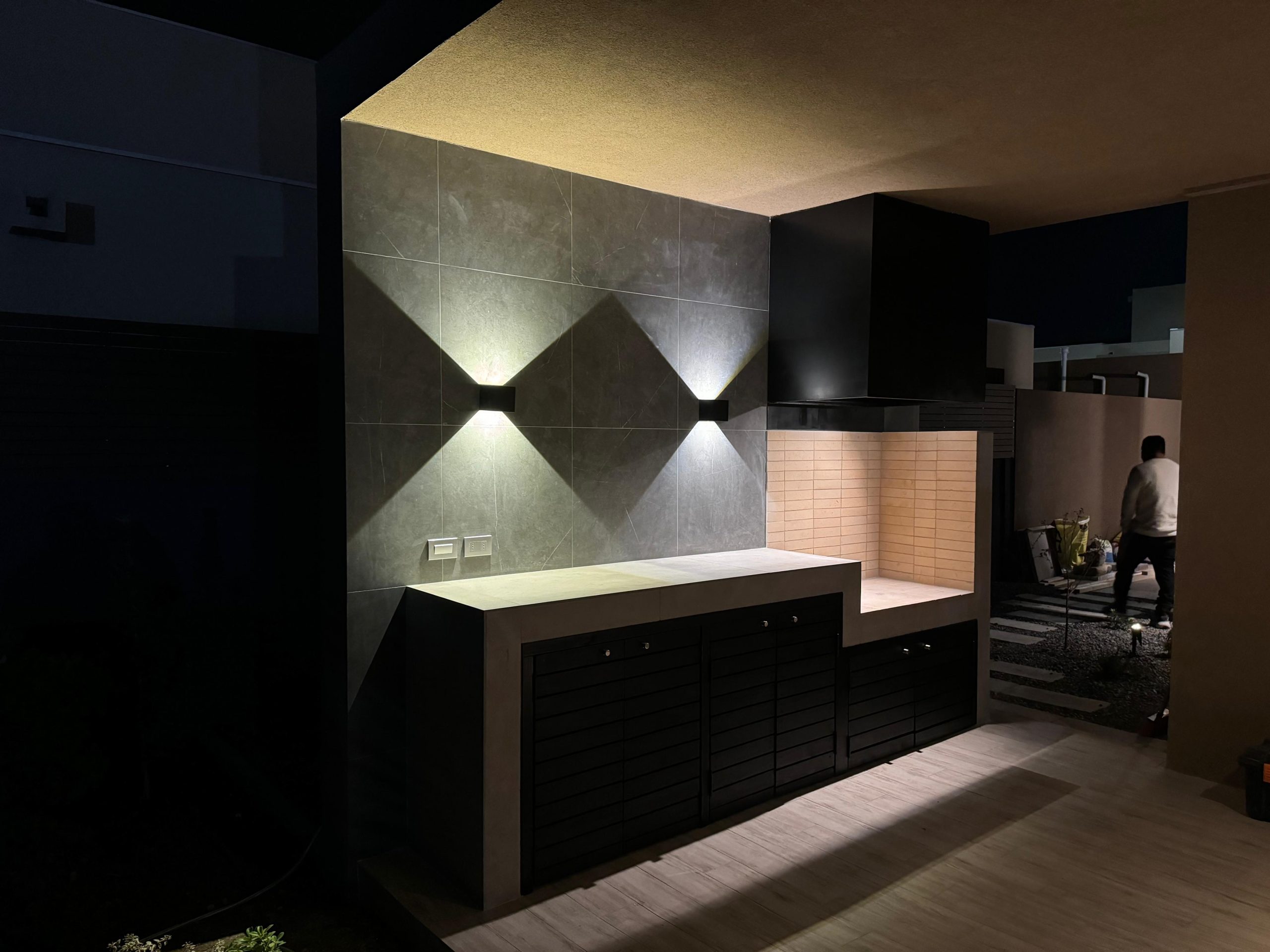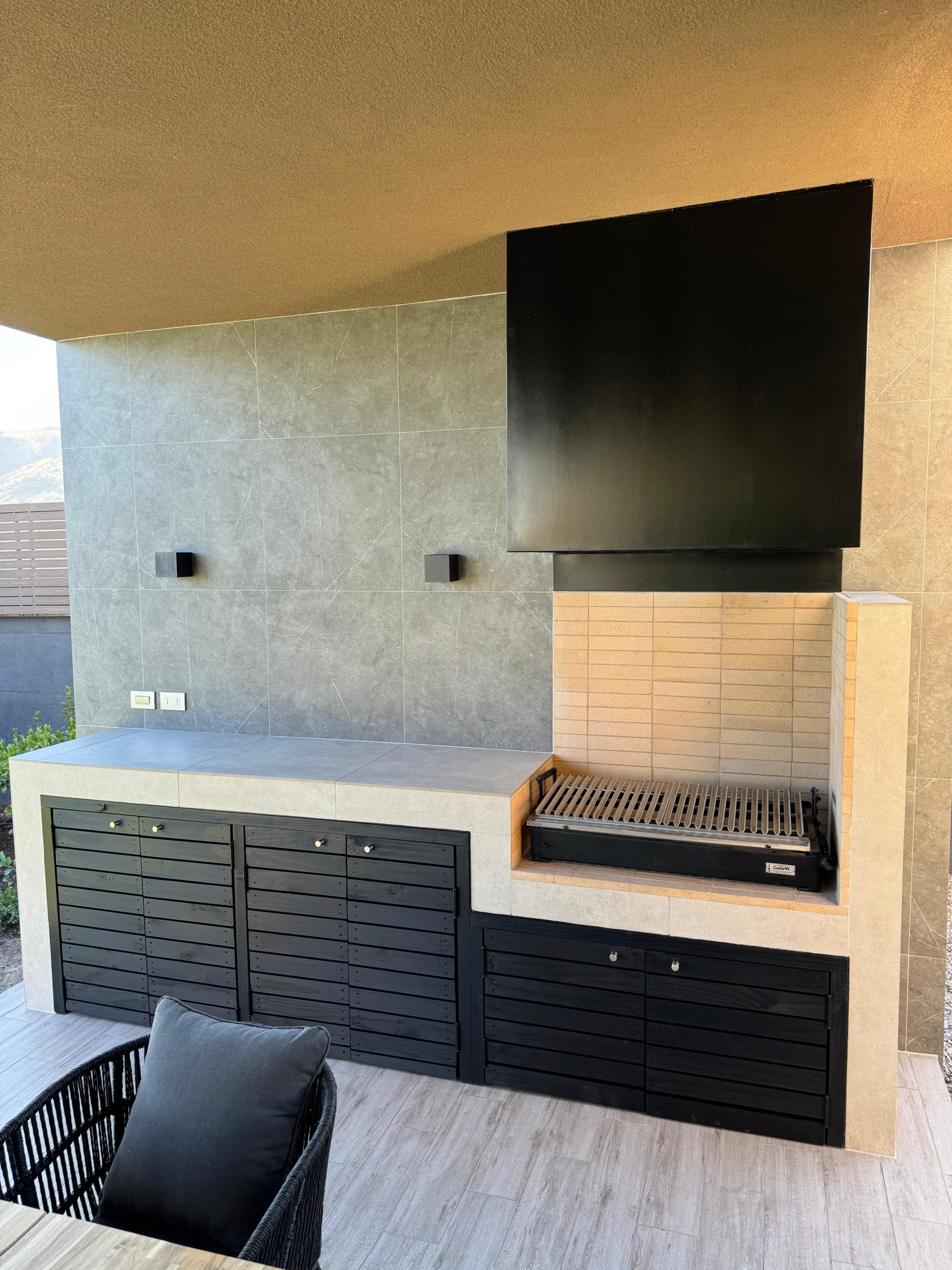 Terraza de metal, madera y policarbonato