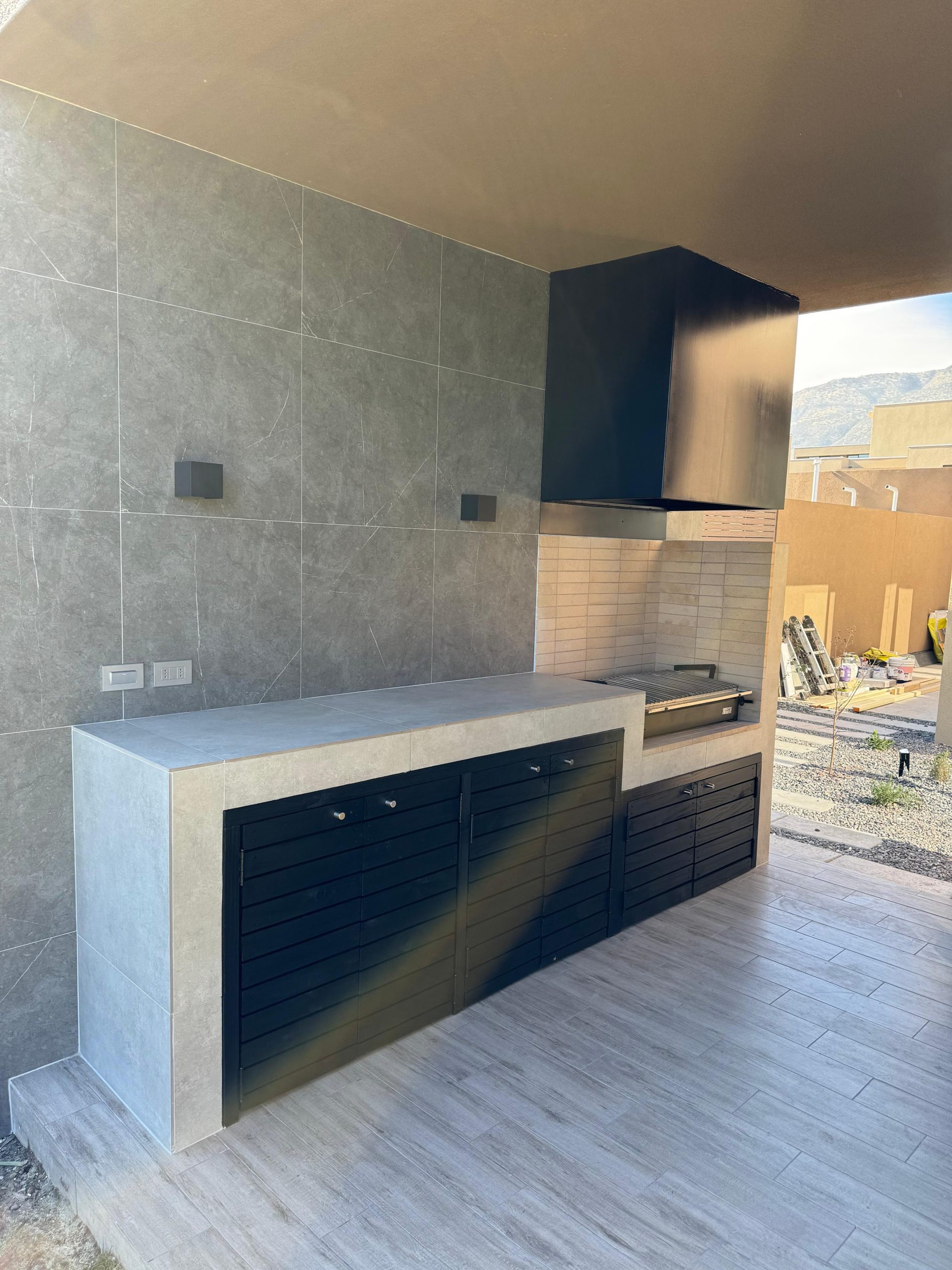 Terraza de metal, madera y teja asfáltica