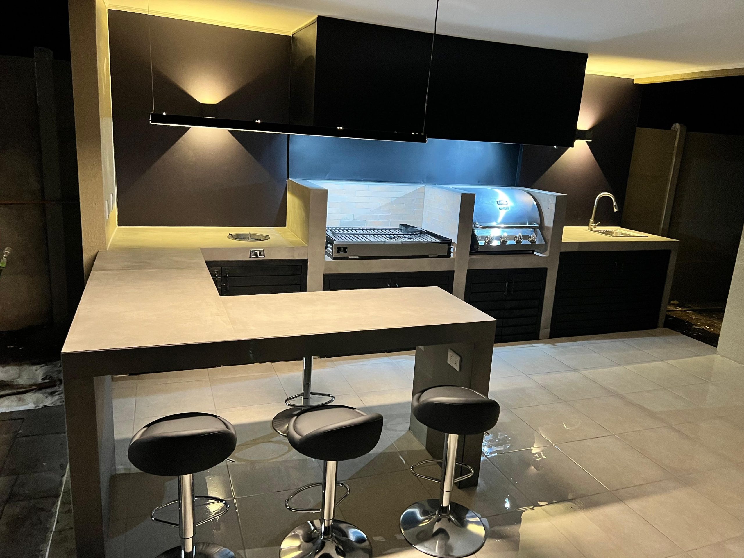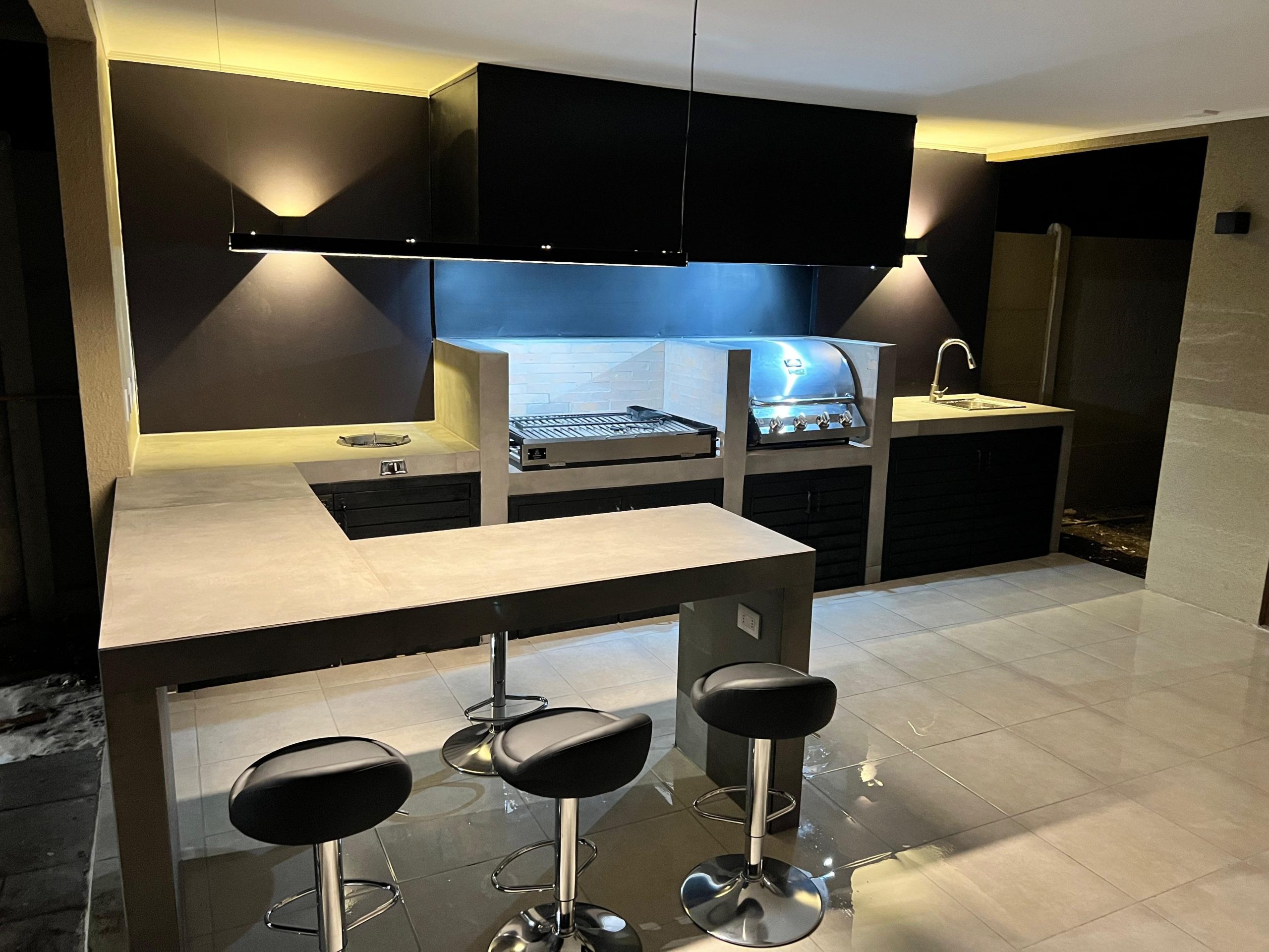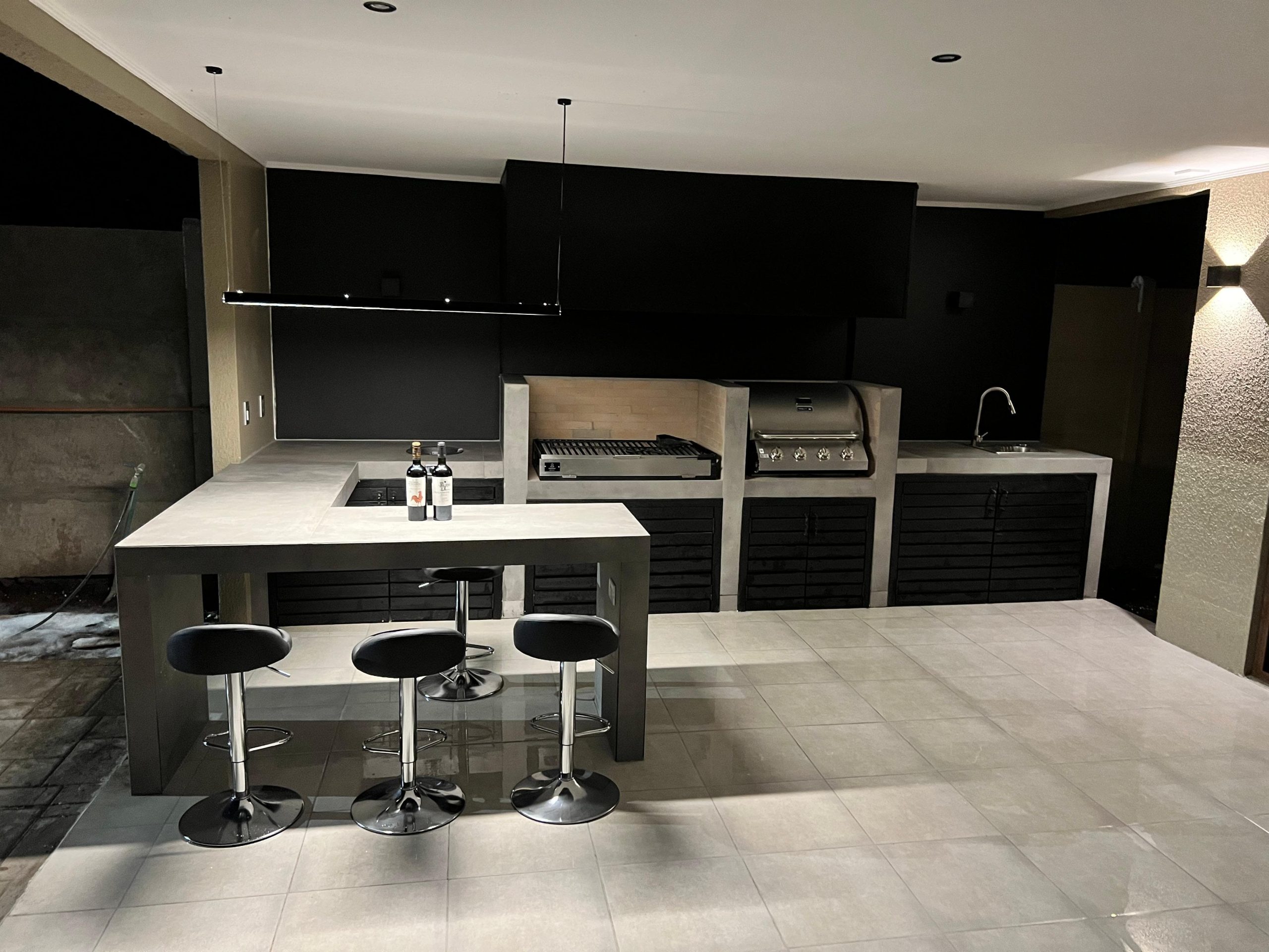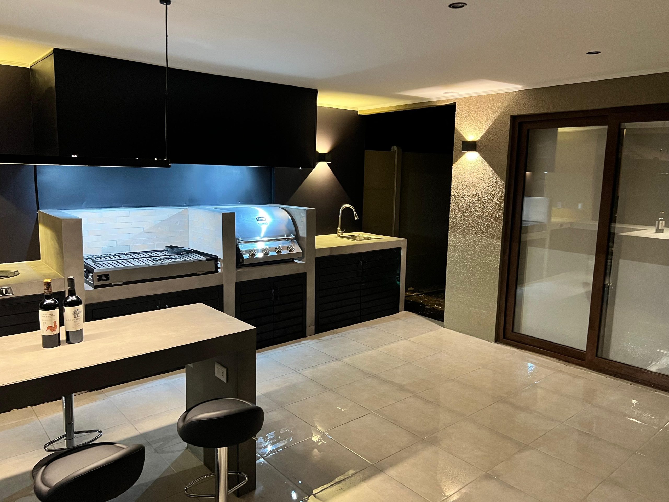 Terraza de metal, madera y policarbonato