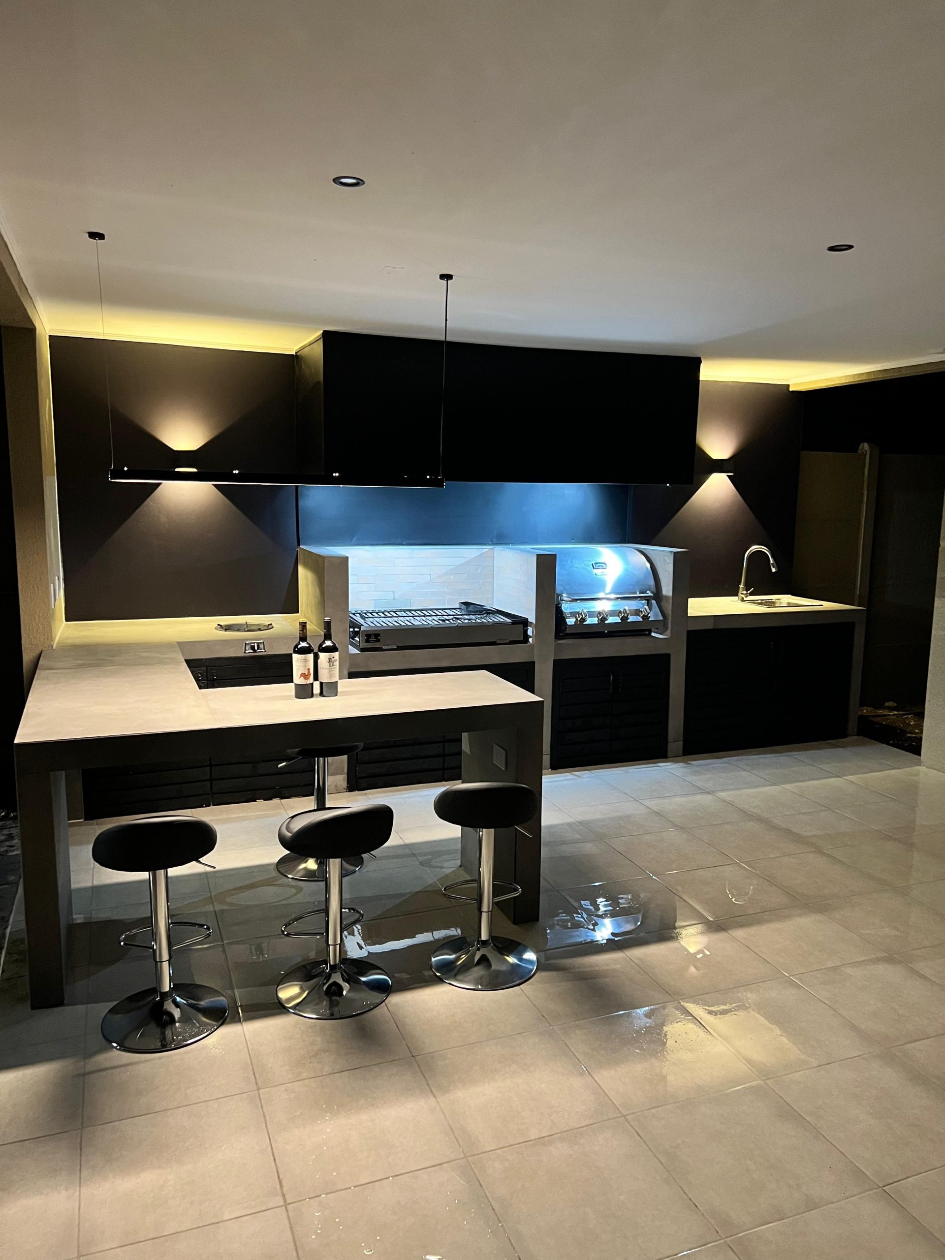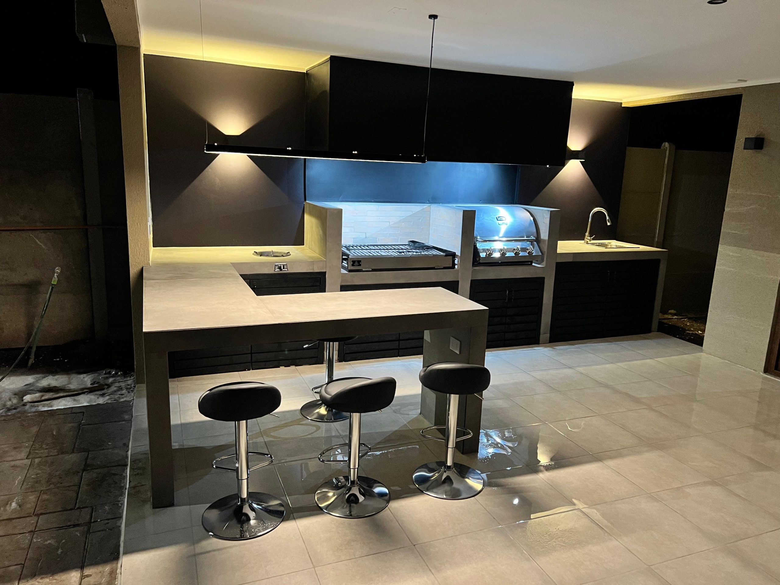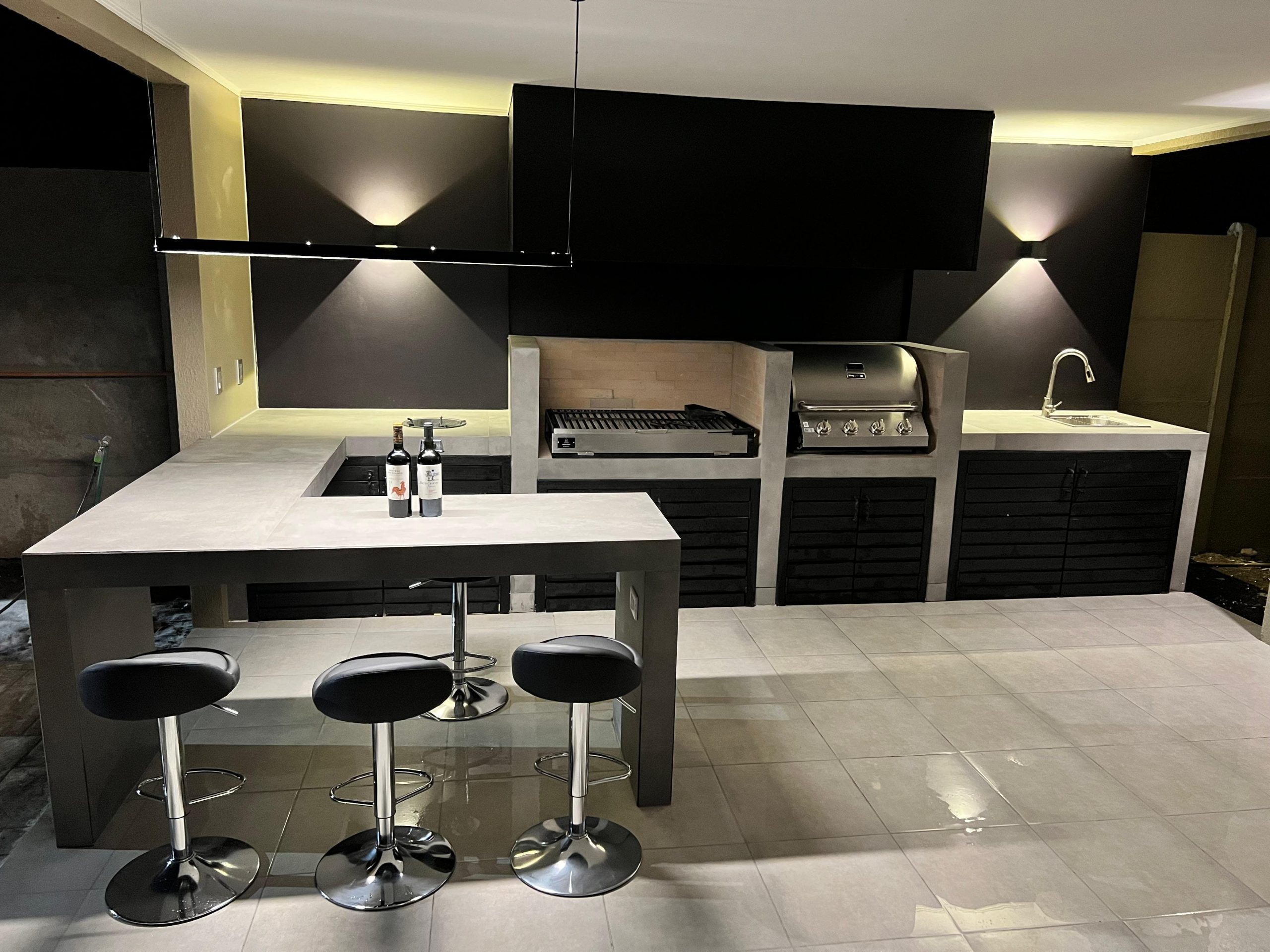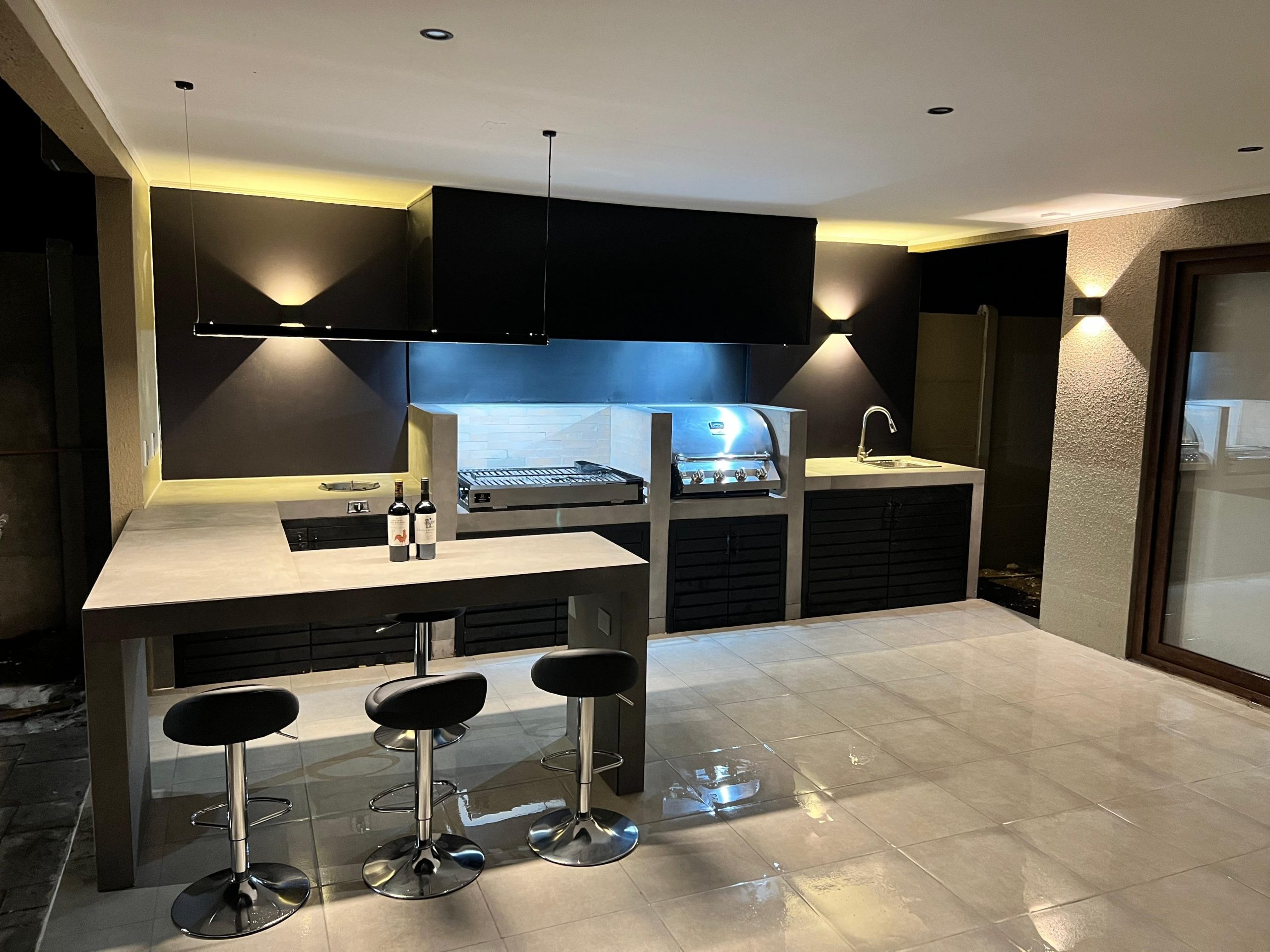 Terraza de metal, madera y policarbonato