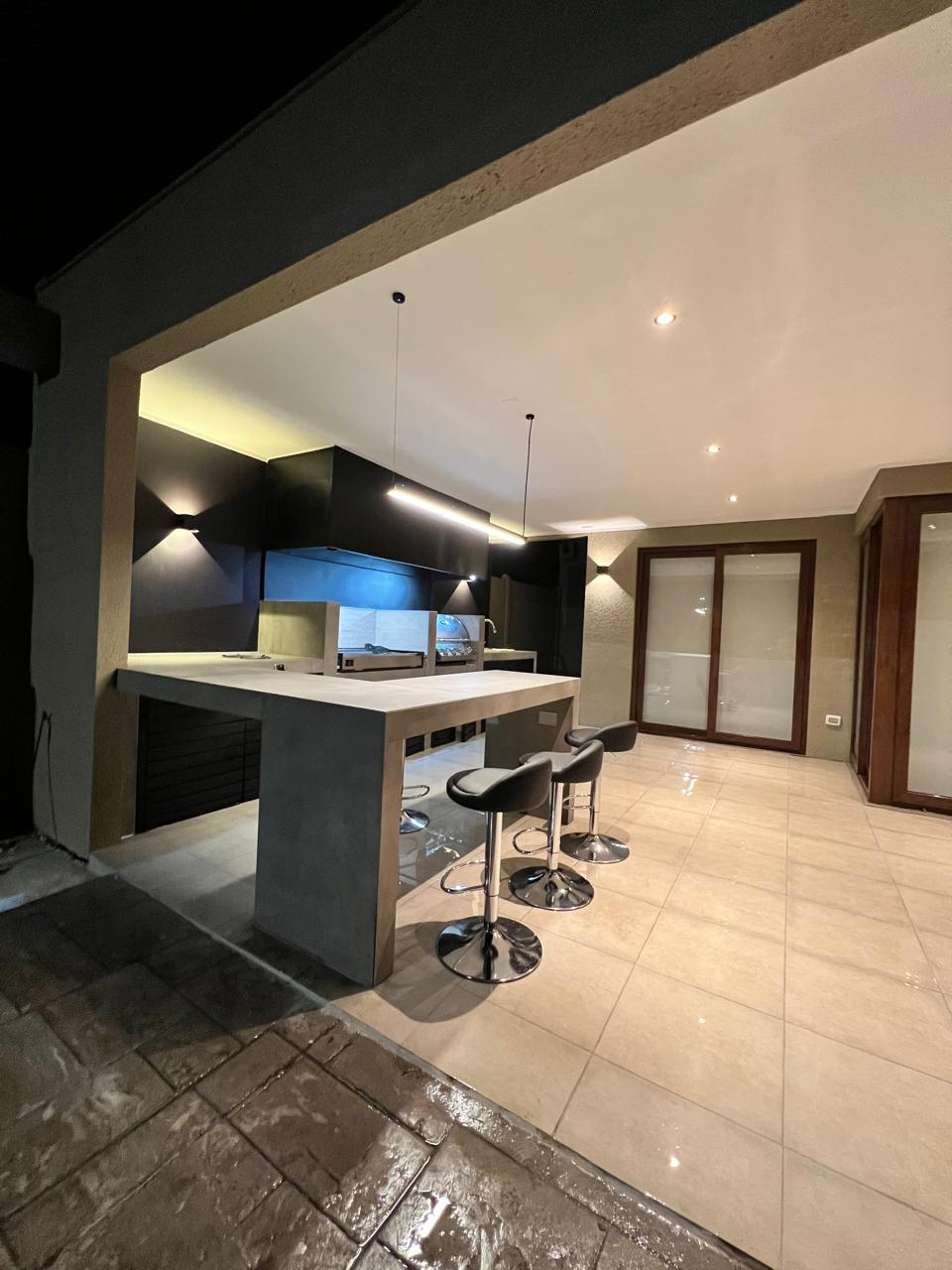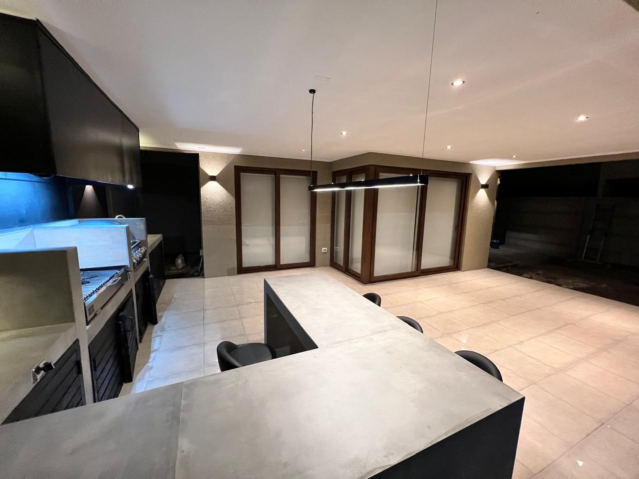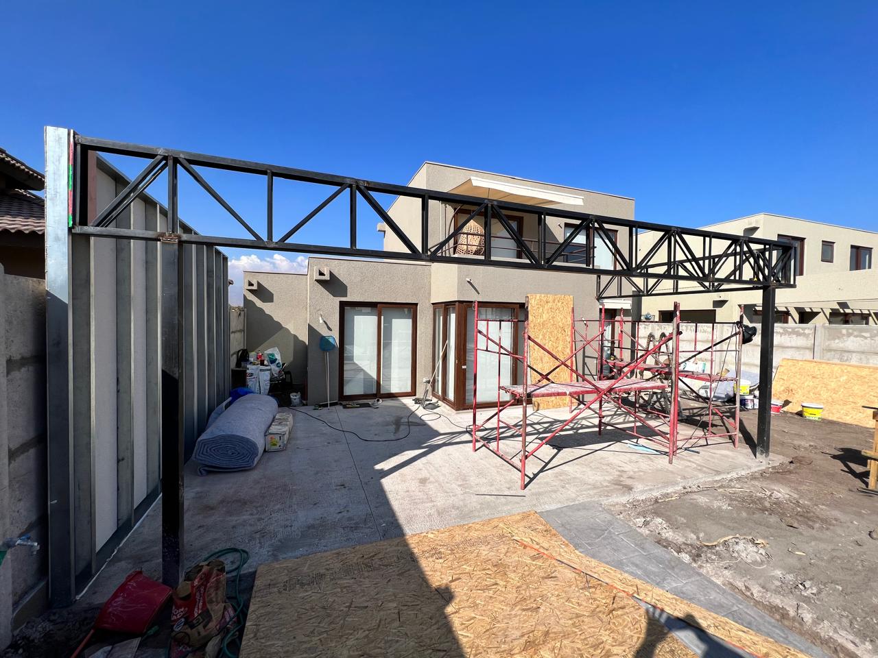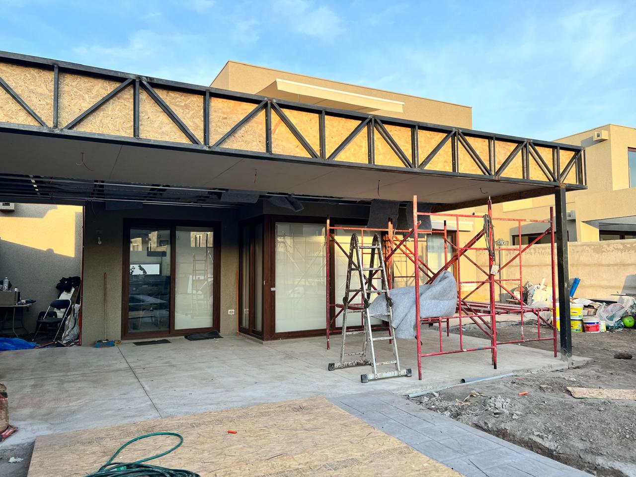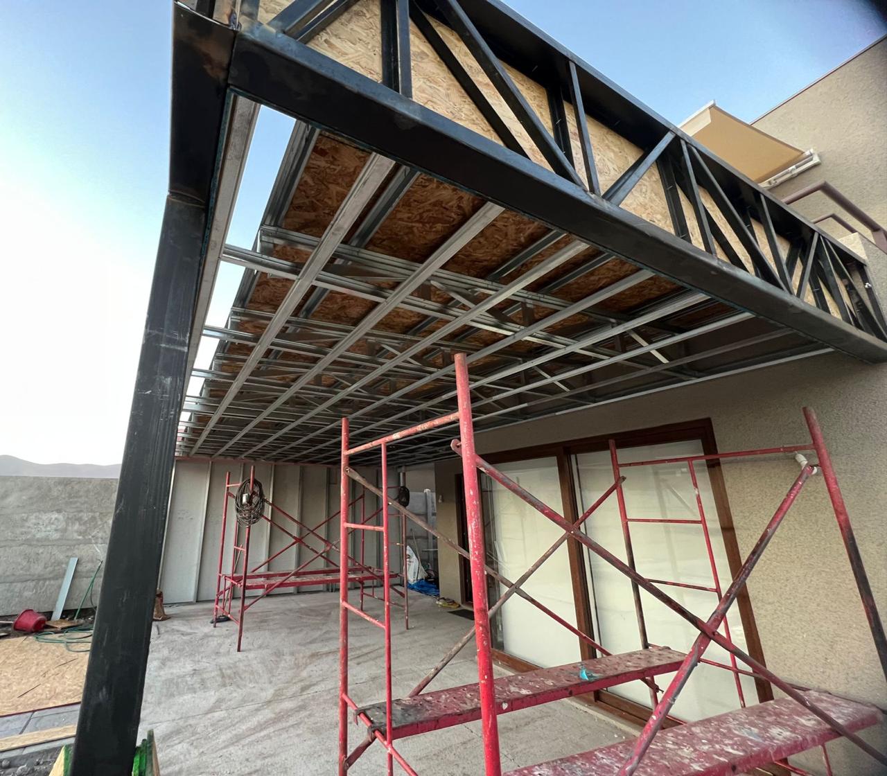 Terraza de metal, madera y policarbonato
